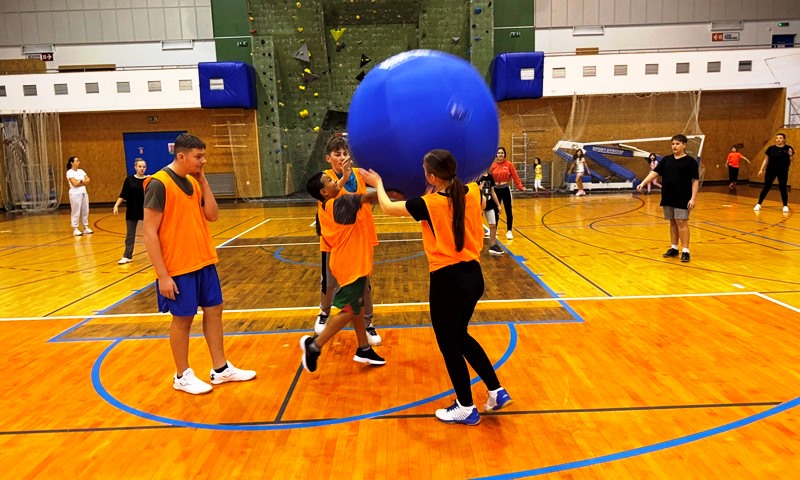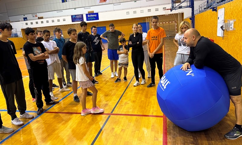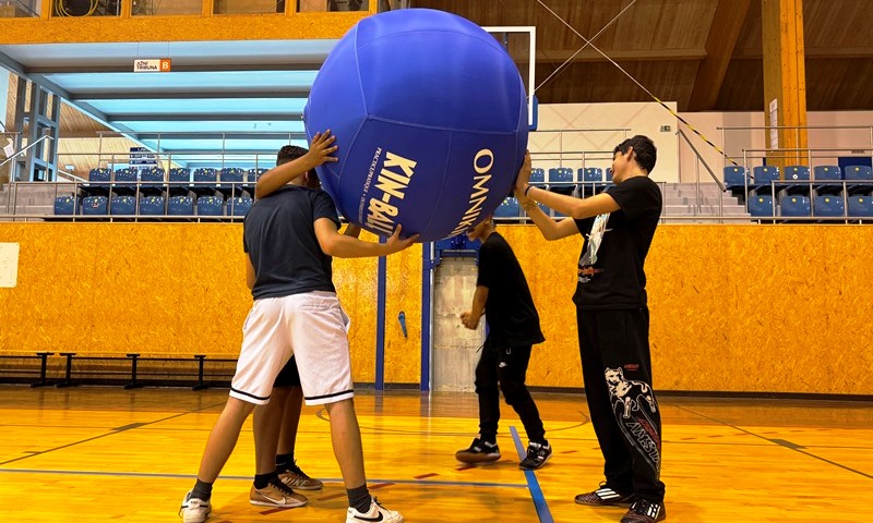 Obří míč, týmová výzva! V tělesné výchově jsme se pustili do hry KIN BALL – kde týmy soupeří současně a cílem je odehrát obří míč tak, aby jej tým na příjmu nechytil a míč se dotkl země. Děti si vyzkoušely, jak důležitá je spolupráce, rychlá reakce a domluva. Nechyběl smích, překvapení ani radost z nového zážitku.